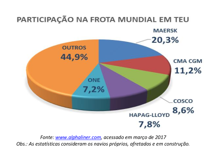 frota mundial de porta-contêineres controlada por apenas cinco operadoras.